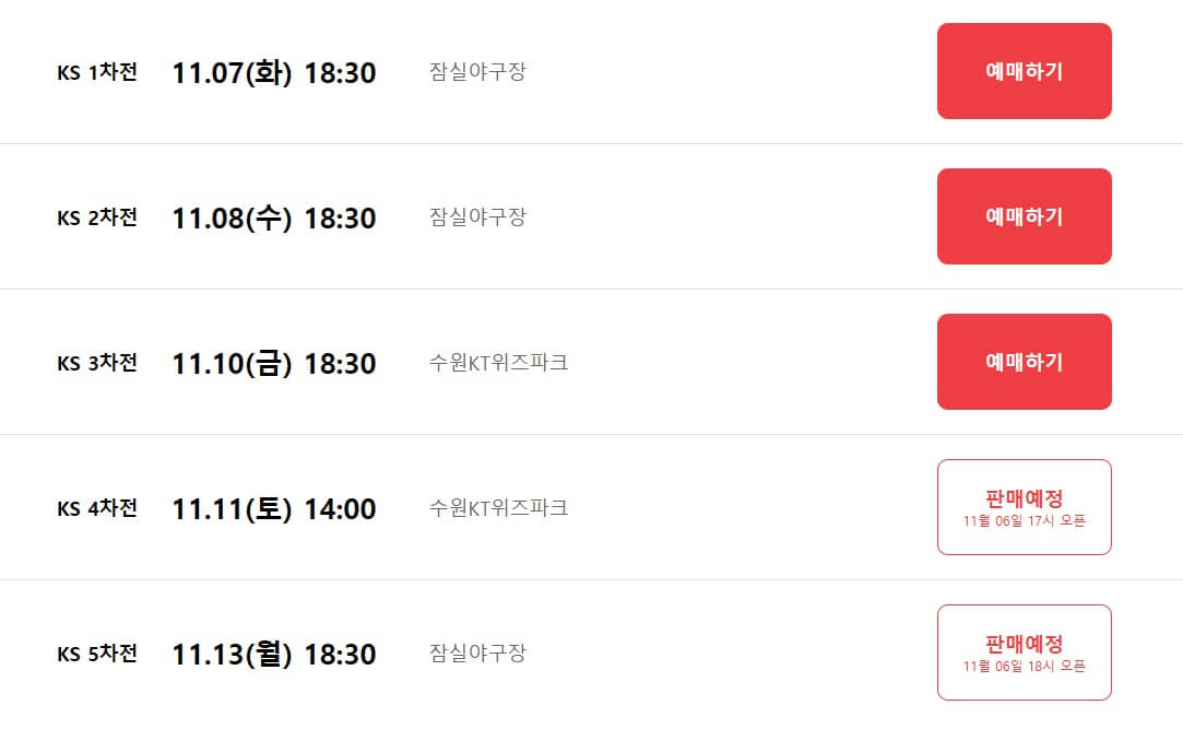 μ΅μ 4κ²½κΈ°κ° μ§νλκΈ° λλ¬Έμ 4μ°¨μ κΉμ§ ν°μΌ μλ§€λ μΉμ΄ν κ²μΌλ‘ μμλ©λλ€. 6μ°¨μ κ³Ό 7μ°¨μ μ μμ§ μ€νλμ§ μμ΅λλ€. ν°μΌμ νμλ³λ‘ μ΅λ 4λ§€κΉμ§ ꡬμ κ°λ₯νλ©°, μ·¨μλ λΉμΌ κ²½κΈ° μμ 5μκ° μ κΉμ§μ΄λ©° ν°μΌ κ΅νμ κ²½κΈ° λΉμΌ 2μκ° μ λΆν° μμλ©λλ€. λͺ¨λ°μΌ ν°μΌμΌλ‘ μλ§€ μ λ°λ‘ μ μ₯ κ°λ₯νλ νΈν κ΄λμ μν΄ λͺ¨λ°μΌ ν°μΌ μλ§€λ₯Ό μΆμ²ν©λλ€.